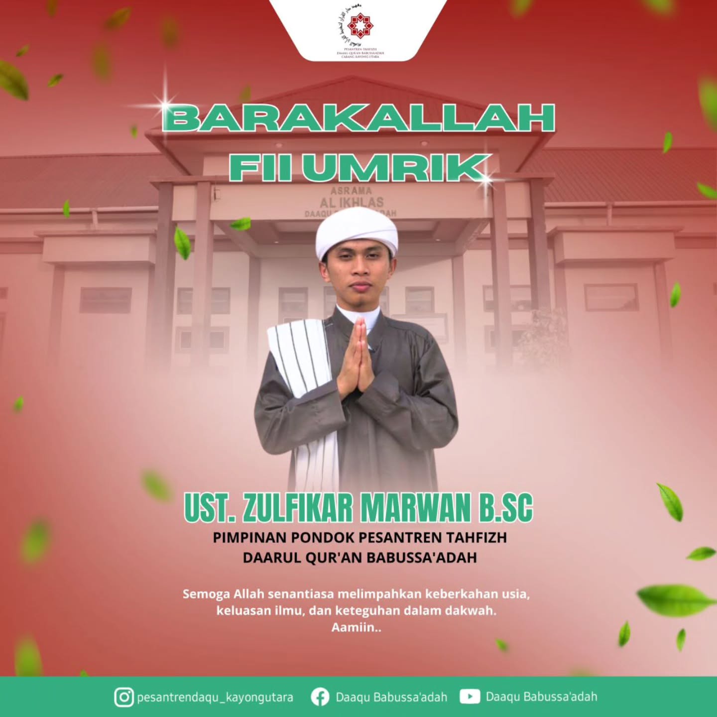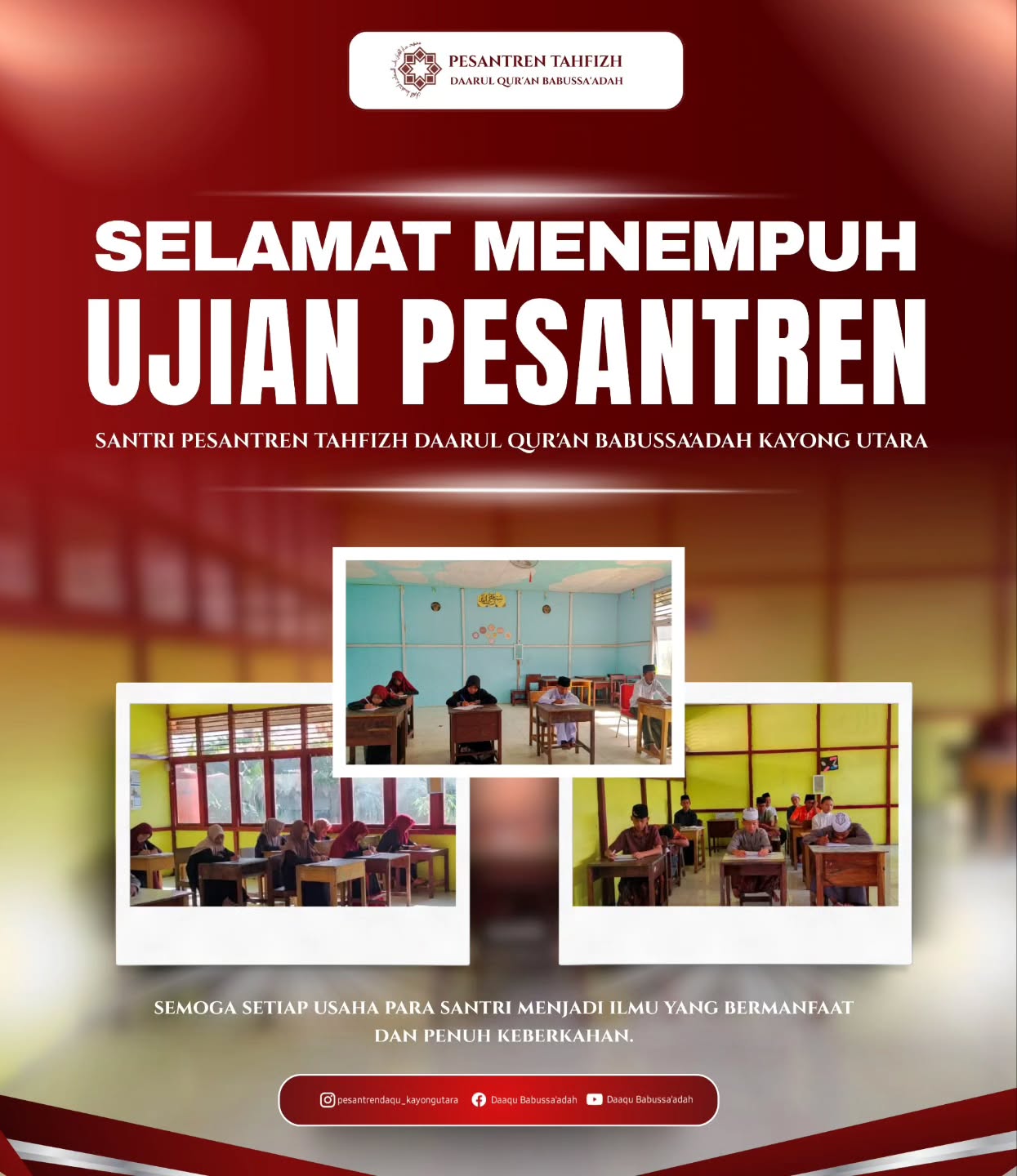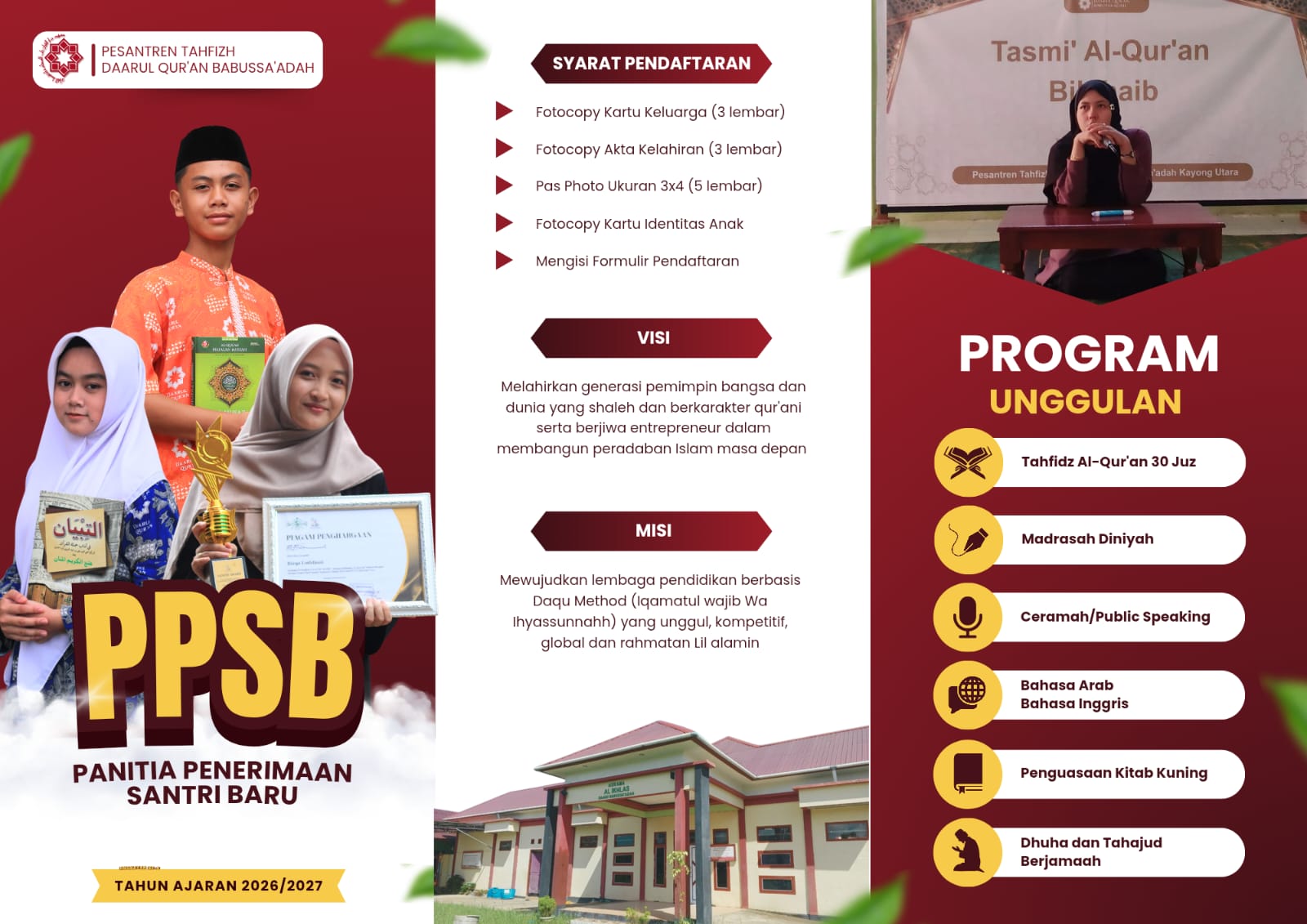 Pesantren Daarul Qur’an Babussaadah hadir di tengah masyarakat Kayong Utara sebagai lentera pendidikan Islam yang memadukan kedalaman spiritual Al-Qur’an dengan kemandirian karakter. Kami berkomitmen untuk tidak hanya melahirkan penghafal Al-Qur’an (Hafidz), tetapi juga pribadi yang memiliki akhlakul karimah dan siap menghadapi tantangan zaman.